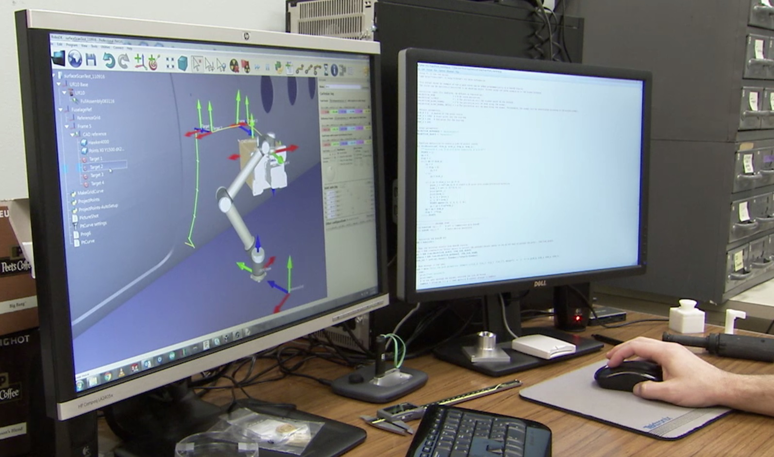 正如艾略特·克莱默所描述的那样:“在计算机中,在你真正开始移动机器人之前,你可以开发检查模式。你使用机身的实体模型,[…]你有机器人的实体模型和检查工具(在这种情况下是红外检查系统)。在电脑里,你可以设计出你要走的路线,你可以设计每个检查点,你可以测试以确保这是最有效的路线,机器人可以做出你需要做的所有动作。”