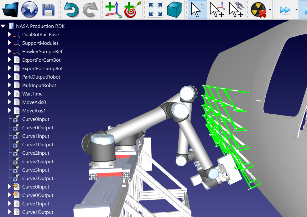 RoboDK在NASA的检测应用中起着关键作用。它很容易结合多个机器人与RoboDK以及合并外部轴到编程。