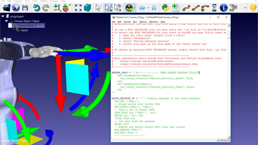 当你可以激活/停用末端执行器通过教学挂件,你很好地在你的方式能够控制它与RoboDK。如果你有问题,试着在我们的机器人论坛(我们不是所有末端执行器的专家,但应该有人能够为你指出正确的方向)。