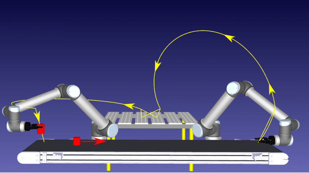 你可能需要在机器人程序中控制传送带。如果没有,您可能必须通过网络与输送机接口。这两种选择都增加了编程的复杂性。
