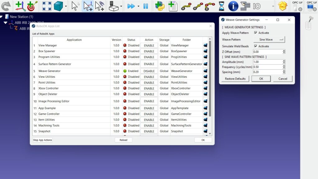 一个你可能还没有听说过的新功能是我们全新的weavergenerator应用程序。这是专门设计来提高你的焊接模拟在RoboDK编程轨迹时的质量机器人焊接。