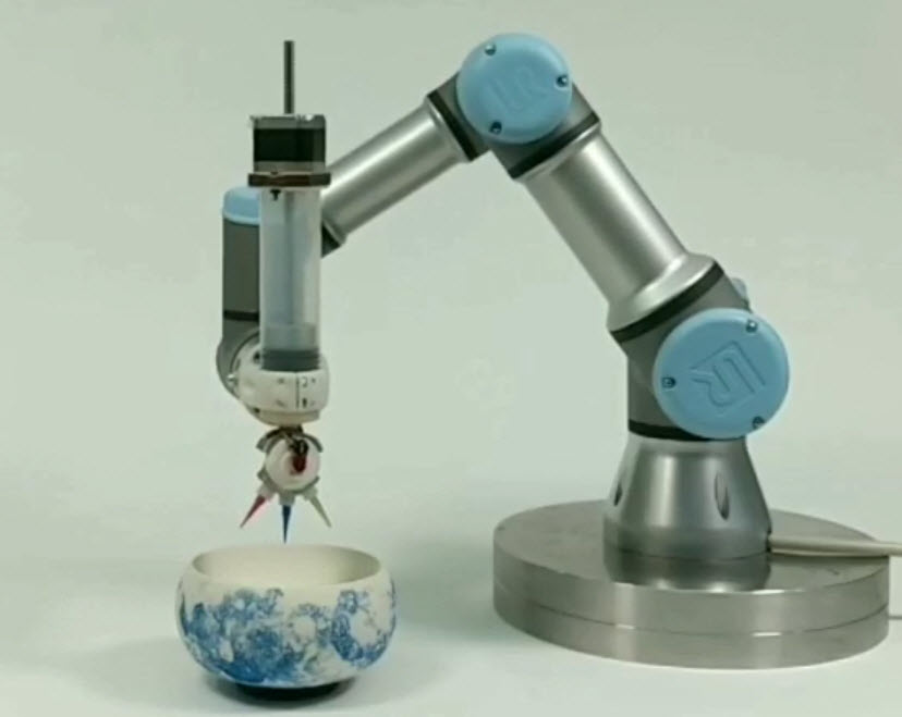 Here, you can see a video of a project perfomed的Hebrew University of Jerusalemwhere RoboDK was used to control a UR3 Universal Robot for 3D printing.