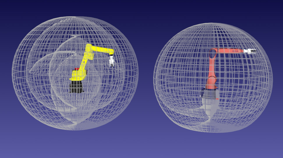 This can be useful when you are trying to decide between two different robot models. But, it can also be helpful when you are using multiple robots on a single task and you want to find out how their workspaces might interact and overlap.